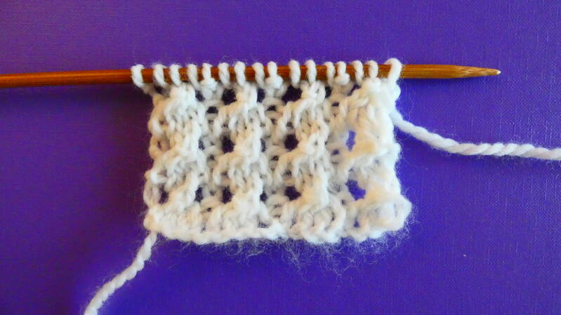 3 ème rang : alternez 1 jeté, puis une surjet double, 1 jeté, 1 maille envers (répétez ceci jusqu'à la fin du rang)