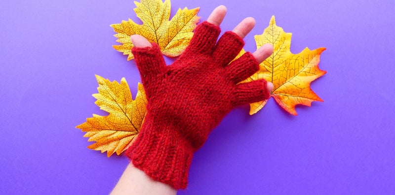 Auriculaire : montez 2 mailles côté paume de la main à la suite de vos 8 mailles = 10 mailles. Tricotez en rond sur vos deux aiguilles sur 8 tours et rabattez les mailles pour que le bout soit troué. 3 cm de haut.