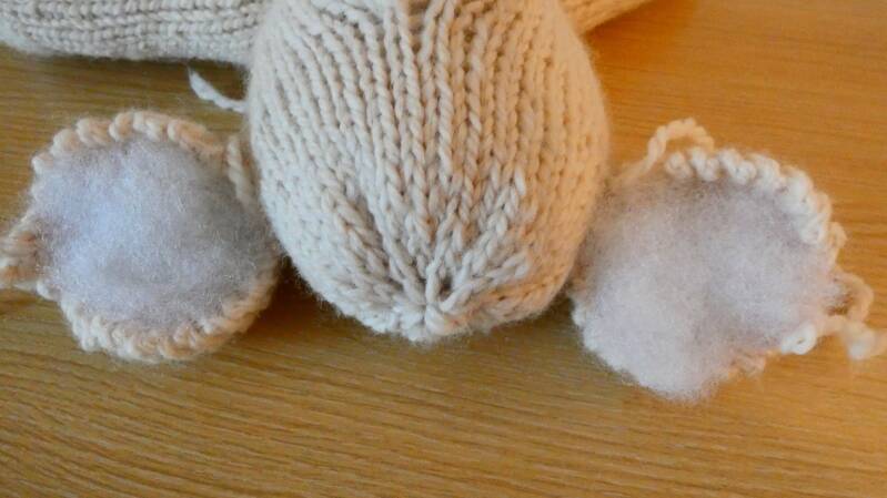 Rembourrage oreilles puis les coudre sur la tête.